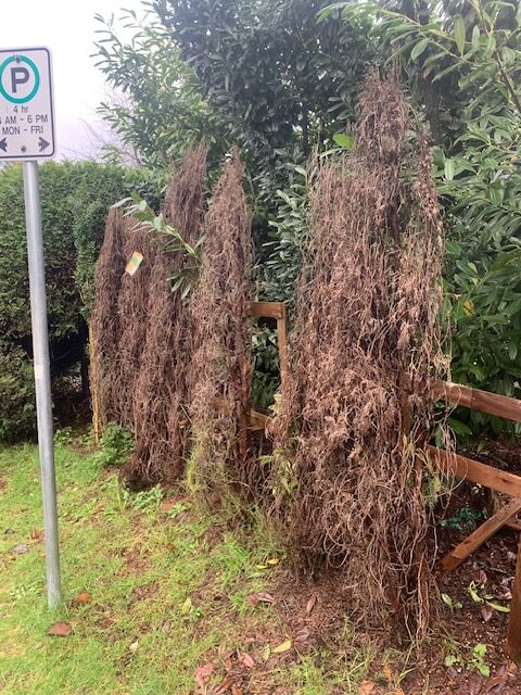 And, unfortunately, I see this a lot. With the climate changing, our summers are getting hotter. And that means that planting a new cedar hedge to replace this dead one is a sketchy project. It’s so hard to establish these new cedar hedges that we openly suggest alternatives to clients. For example, we find that the glossy Portuguese laurels (Prunus lusitanica) do much better in the heat once they get established. They can be sheared and eventually form a nice hedge, even if it isn’t as solid as a cedar hedge.