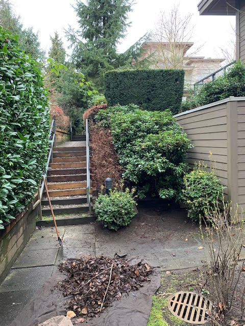 Considering this work was done in February 2026, it’s shocking how much leaf debris I pulled out from one corner. I think the leaves were just blown under the rhododendron and out of sight. That’s not what consider good landscape maintenance. This site can’t be leafy this close to spring.