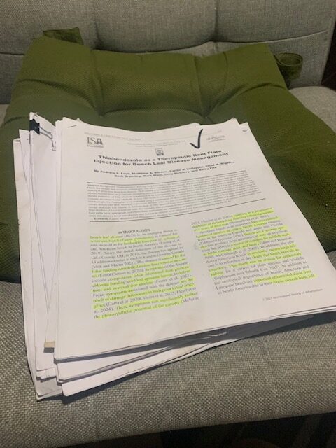 Here’s one benefit of having a bachelor’s degree: my undergraduate training involved reading copious amounts of science journal articles and summarizing them. And that’s exactly what I had to do to earn my credits. I plowed through many arboriculture journal articles and answered twenty questions for each. The pass mark is set at 16 out of 20.